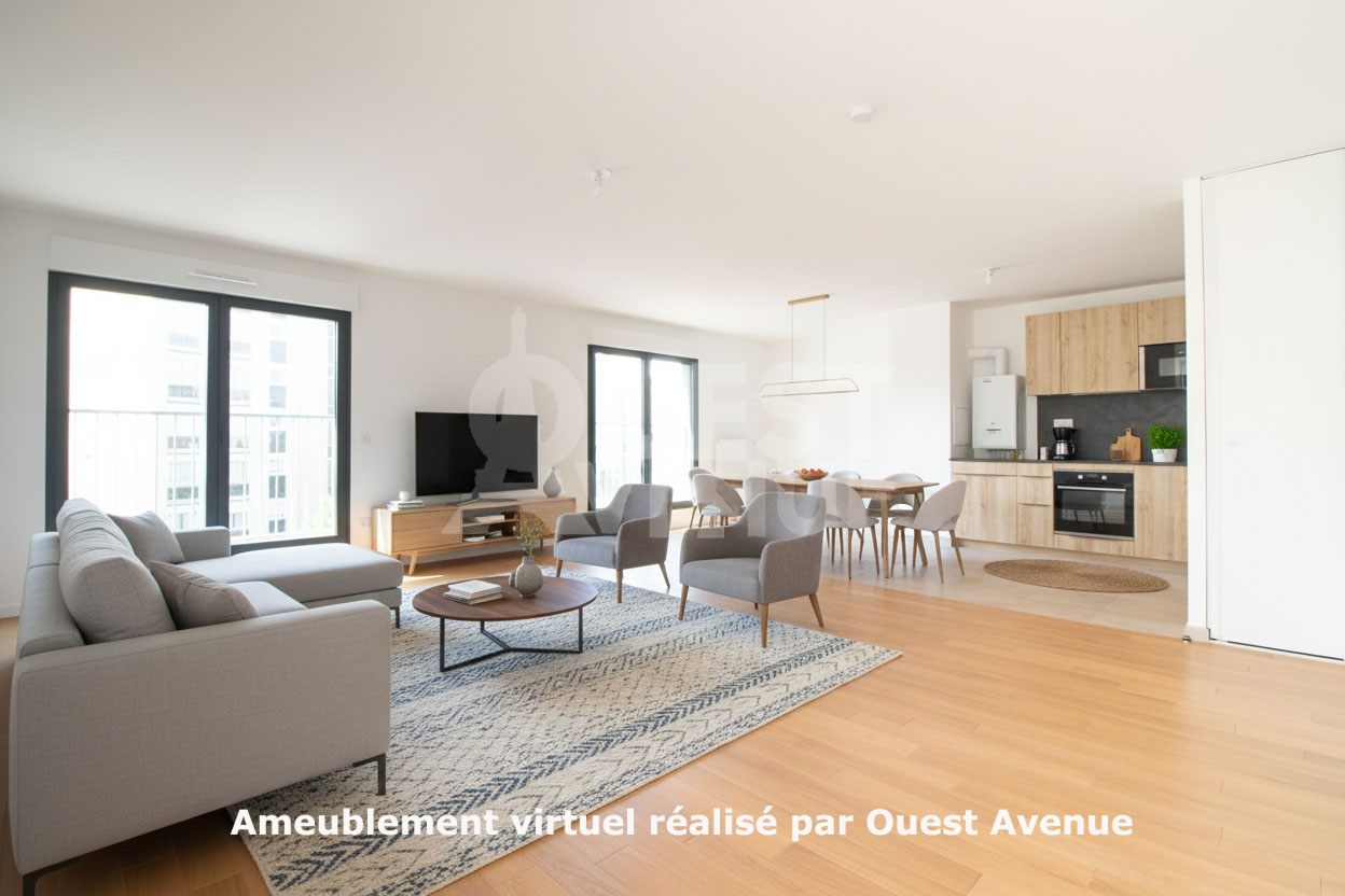 NEUF FRAIS DE NOTAIRE REDUITS. BOULOGNE LES PASSAGES. LUMINEUX. TRAVERSANT. ACCES PMR. FAIBLES CHARGES. Idéalement situé entre Boulogne Nord Jean Jaurès et le centre commercial Les Passages, seul sur le palier d’un immeuble de 2022, magnifique grand 5 pièces de 112m2 neuf bénéficiant de prestation de qualité (nombreux rangements sur mesure, électroménager neuf de qualité, beau parquet, porte blindée..). Traversant et très lumineux (grandes fenêtres), il est composé d’une magnifique pièce de vie plein sud sur jardins de plus de 50m2 avec cuisine ouverte entièrement aménagée et équipée et coin bureau ou salon détente, de 3 chambres, d’une salle de bains avec WC, d’une salle de douche et d’un 2e WC séparé. Un local vélo sur cour. Un emplacement de parking possible en sus. A VOIR !! Contactez votre agent commercial Virginie GROSJEAN au 06.63.89.56.56.