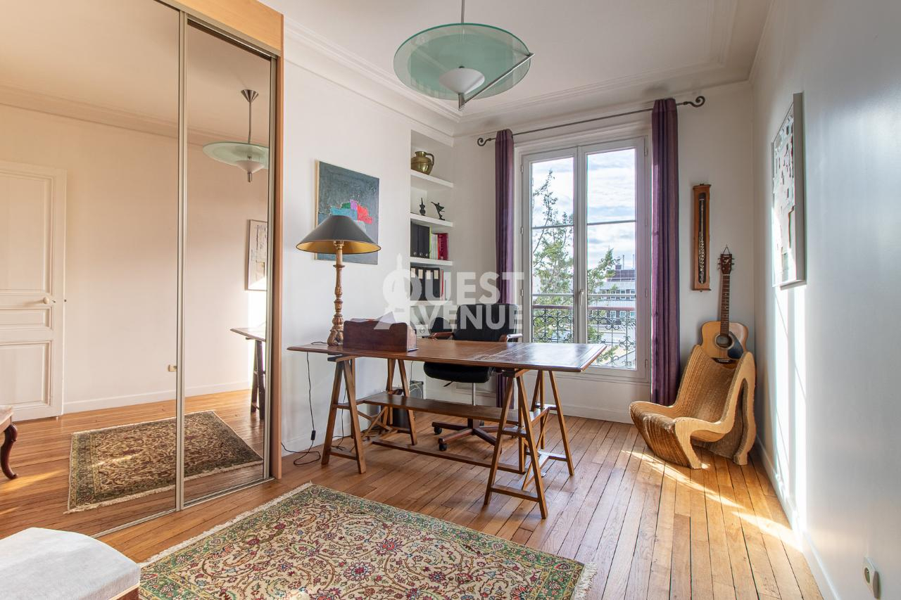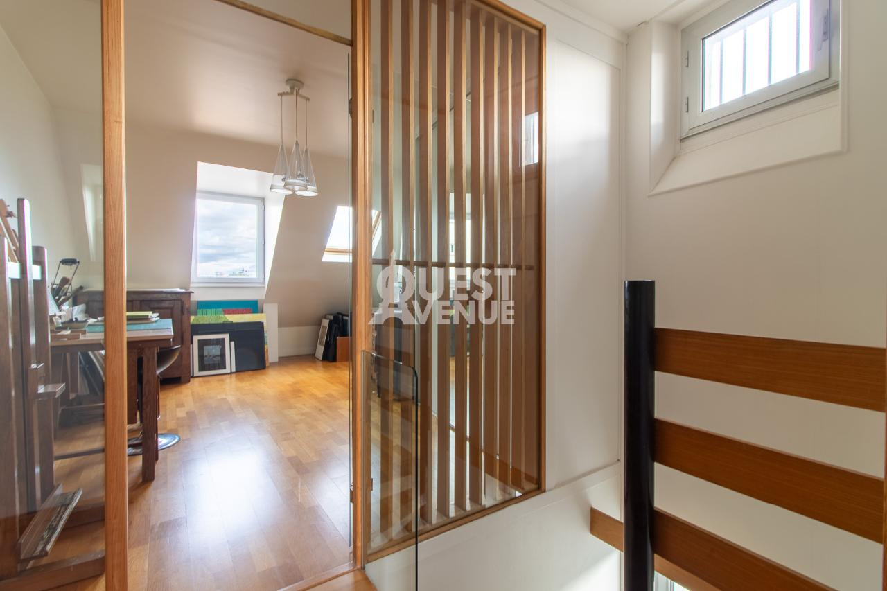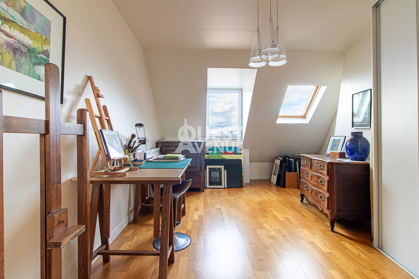LUMINEUX (Triple Exposition). DERNIER ETAGE. SANS VIS A VIS. FAIBLES CHARGES. CHARME DE L’ANCIEN. Au coeur du quartier Prince-Marmottan, aux 2 derniers étages (3e et 4e) d’un magnifique immeuble de 1910 (petite copropriété), très beau duplex en bon état de 169m2 au sol (156 carrez du fait des hauteurs sous plafond du 4e étage). Il bénéficie de tous les charmes de l’ancien : beau parquet, hauteur sous plafond, cheminées, moulures. Il est composé au 3ème étage d’une entrée, d’un séjour de 35m2, d’une cuisine dinatoire de 12m2 et 2 chambres dont l’une pouvant être ouverte en partie sur le séjour pour éventuellement agrandir la pièce de réception en créant une salle à manger (et ne conserver dans ce cas que 5 chambres), une salle de bain et un wc séparé. Au 4ème étage, 4 chambres et une salle de douche avec wc. L’appartement est en très bon état. Possibilité de profiter d’une cour commune au calme et exposée ouest. La copropriété est très bien entretenue et bénéficie de très belles parties communes. 3 caves complètent ce bien dont une cave à vin aménagée pour de la dégustation. Grand box possible en supplément. Très bien placé, entre l’école /collège Dupanloup, le marché Escudier, la place Denfert Rochereau et le métro ligne 10 Boulogne Jean Jaurès, Bus 52. Sectorisation maternelle Fessard, élémentaire Escudier, Collège Landowski. Ecole et Collège Dupanloup à 450m. TRES RARE. A VOIR VITE !! Contactez votre agent commercial Virginie GROSJEAN au 06.63.89.56.56. (3.13 % honoraires TTC à la charge de l’acquéreur.)