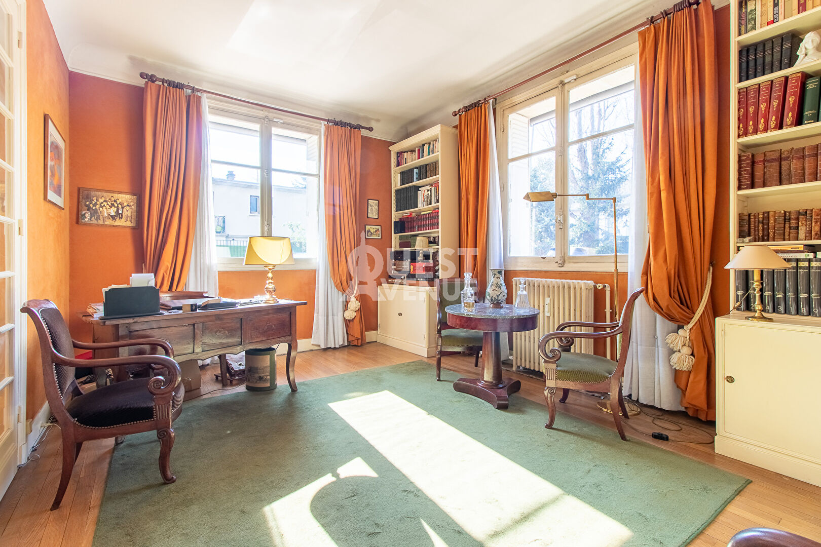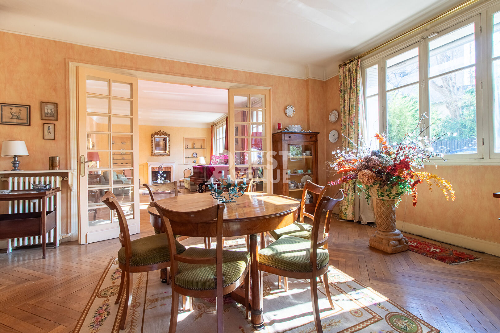 PRINCE-MARMOTTAN. IDEAL PROFESSIONS LIBERALES . ENSOLEILLE. CALME. STANDING. Dans une allée privée proche de Roland Garros, au calme total d’une résidence standing des années 30 très bien entretenue avec gardien, vous serez séduits par ce très bel appartement familial et de réception de 188m2 bénéficiant du charme de l’ancien, d’une cheminée fonctionnelle et d’une grande hauteur sous plafond (3m). La double exposition SUD et OUEST et l’absence de vis à vis en font un espace de vie très ensoleillé toute l’année. Cet appartement offre la possibilité de créer jusqu’à 4/5 chambres selon les besoins. Il se compose actuellement d’une belle galerie d’entrée menant au double séjour très lumineux plein sud de 37m2, d’une salle à manger de 21m2 pouvant être transformée en chambre ou cuisine dinatoire, d’une cuisine séparée mais pouvant être également transformée, de 3 chambres et un bureau (ou petite chambre d’enfant) d’une salle de douche, d’une salle de bain, 2 wc, et de nombreux rangements. Une cave en sous sol et 2 emplacements de parking dans la résidence complètent ce bel appartement. Emplacement privilégié à proximité de Roland Garros, sectorisation collège Landowski. Ecole et Collège Dupanloup à 3mn à pied sur le même trottoir (aucune rue à traverser) Commerces de la rue Escudier au bout de la rue (600m) ! Profession libérale autorisée. Video disponible sur instagram et facebook (comptes virginie grosjean pro) A VOIR ! Contactez votre agent commercial Virginie GROSJEAN au 06.63.89.56.56. (3.57 % honoraires TTC à la charge de l’acquéreur.)