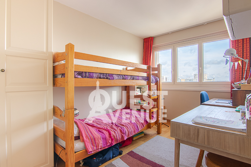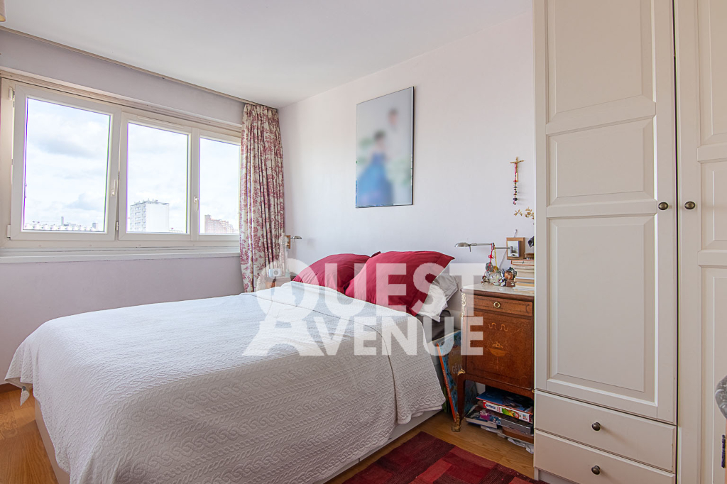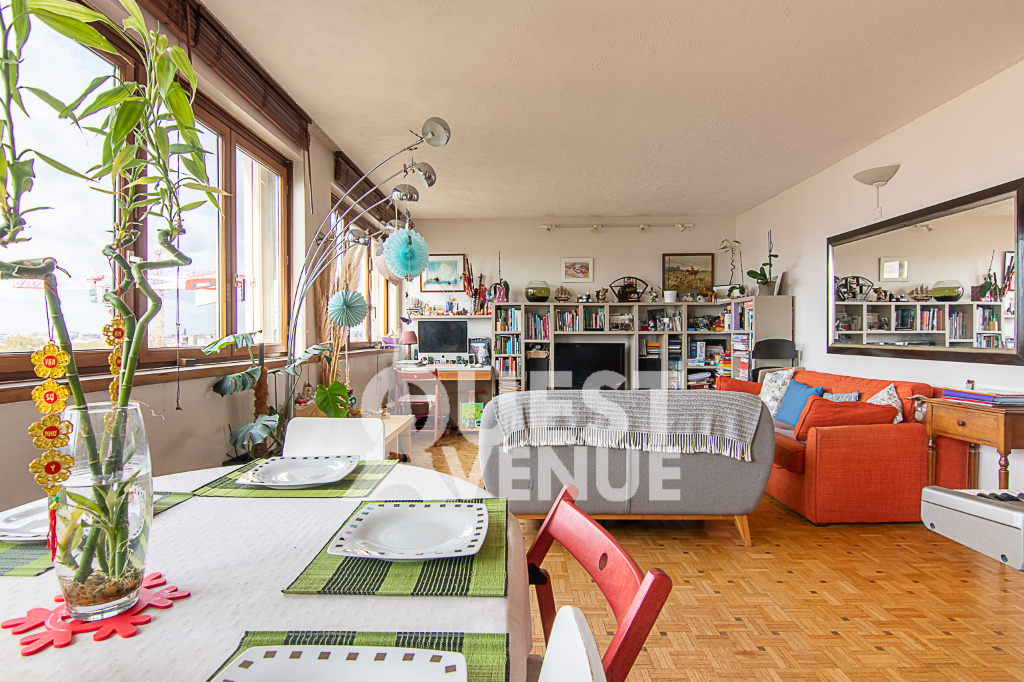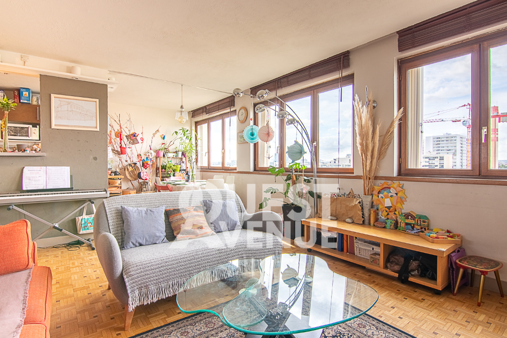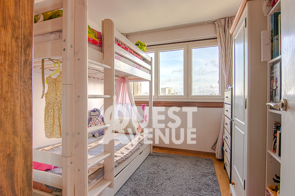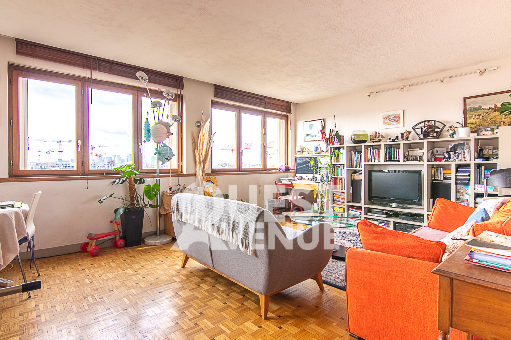 CENTRE VILLE de Clichy a 5 min de Paris, à proximité de la mairie, Dans un bel immeuble semi-récent. Appartement traversant 4 pièces comprenant : Une entrée avec rangements, un séjour salle a manger avec une vue panoramique sur Paris et la défense; cuisine ouverte, 3 chambres, un grand dressing; une salle de bain et un WC séparé. Ce bien comprend un grand cellier et emplacement de parking. Au pied des commerces et des transports. A VOIR !!! . (2.20 % honoraires TTC à la charge de l’acquéreur.)