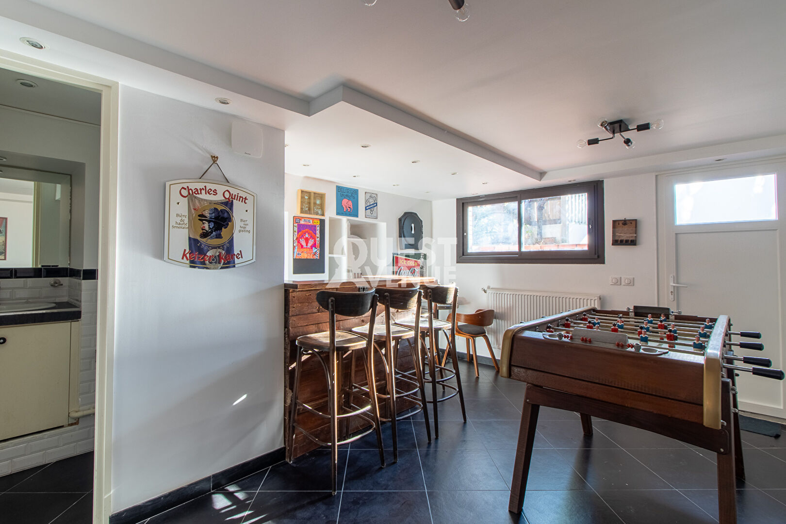 Au sous-sol (semi-enterré) avec son propre accès vers l’extérieur : une grande chambre de presque 19 m² (idéal pour un adolescent), un grand bureau, une chambre d’ami, une salle d’eau avec WC, rangements et une buanderie.