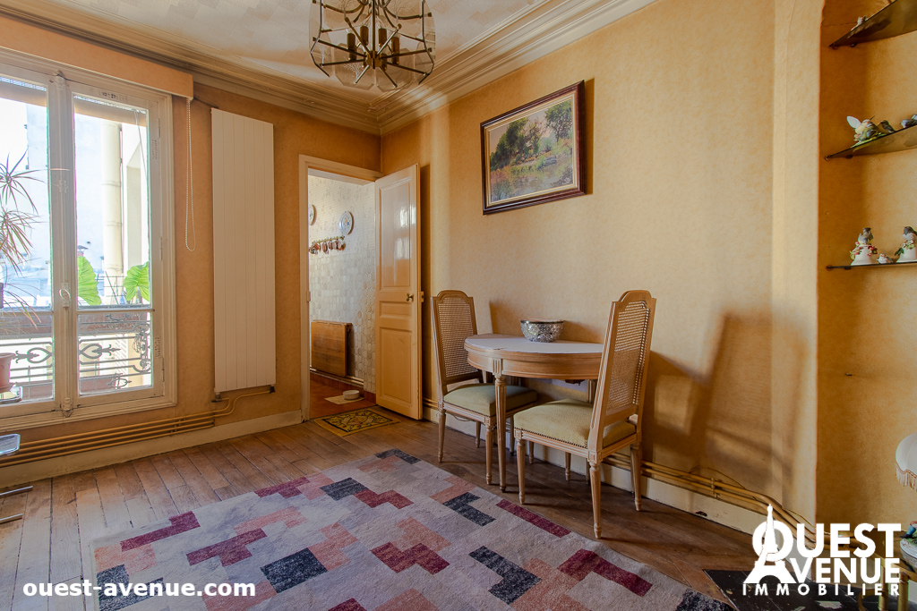 MAIRIE de LEVALLOIS- Au 4ème étage d’une résidence 1900 très bien entretenue, cet appartement de 45m², est calme, traversant et lumineux . Côté cour, vous trouvez une cuisine équipée et une salle à manger de 10m²; coté rue le séjour et une chambre de 13m² avec grands rangements. Salle d’eau et WC séparés. Cave. Travaux de rafraîchissement à prévoir. Possibilité d’acquérir un parking. (3.90 % honoraires TTC à la charge de l’acquéreur.)