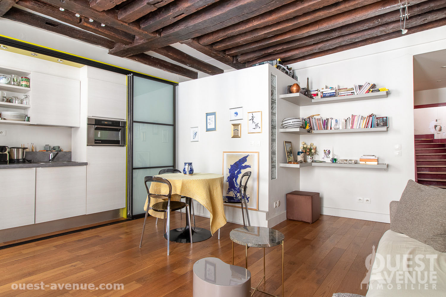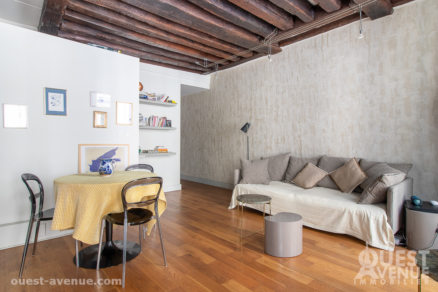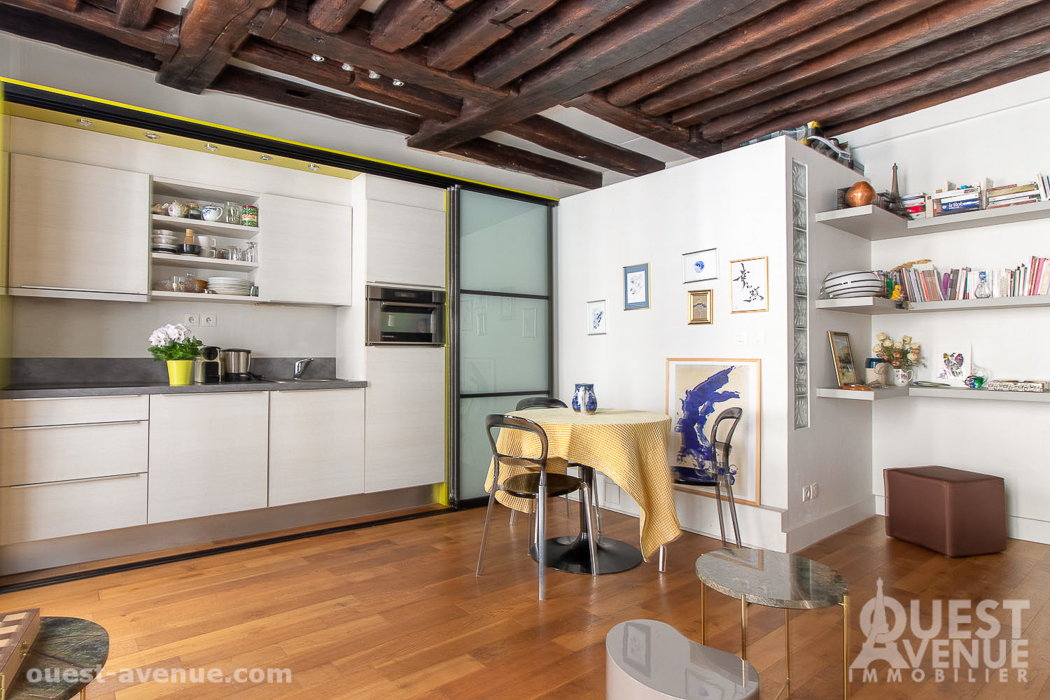 A deux pas de la rue de Bretagne, en plein coeur du Paris culturel et plein de charme, au troisième étage d’un immeuble bien tenu, ce joli deux pièces vous attend. Appartement traversant aux beaux volumes ( 3m de Hauteur sous plafond) dont le salon donne sur une rue calme quasi piétonne et la chambre sur cour. L’entrée s’ouvre sur une pièce de vie agréable et spacieuse d’une surface de 23m2 avec deux grandes fenêtres en double vitrage bois intégrant une cuisine us à portes coulissantes. A droite de l’entré, vous trouverez un wc séparé puis l’espace nuit côté cour, avec une chambre de 12m2, sa salle d’eau et quelques placards. DPE E possible avec petits ajustements du type : interrupteurs de chauffage réglables à distance, vmc premier modèle).