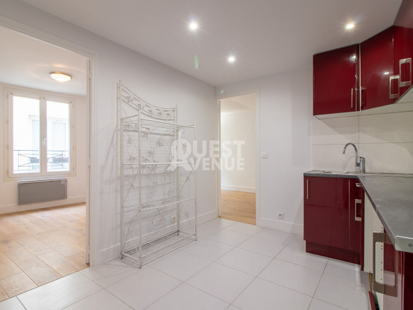 Au premier étage avec ascenseur, ce nid charmant est traversant avec deux espaces distincts. L’entrée s’ouvre sur la partie jour avec une pièce de vie agréable et une cuisine semi ouverte toute équipée, puis un petit couloir mène à la partie nuit composée d’une grande salle de bains avec fenêtre et d’une chambre sur cour. Pour un 3 pièces, avec travaux, la cuisine peut devenir deuxième chambre et le salon peut intégrer un petit coin cuisine. Bon investissement locatif également.