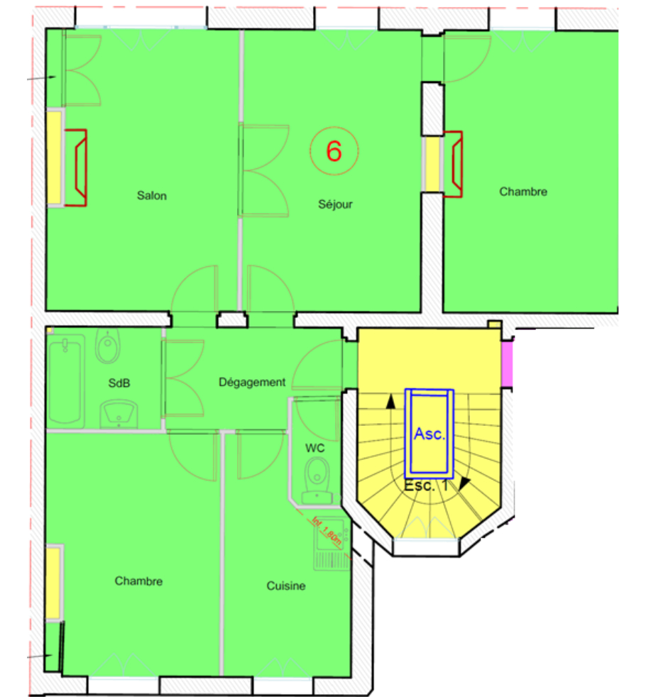 Il se compose d’une entrée desservant un double séjour ouvrant sur un balcon exposé Est, une cuisine indépendante, deux chambres, une salle de bains et des toilettes séparées. TRAVAUX A PREVOIR