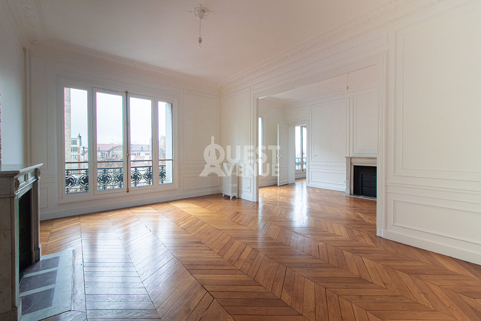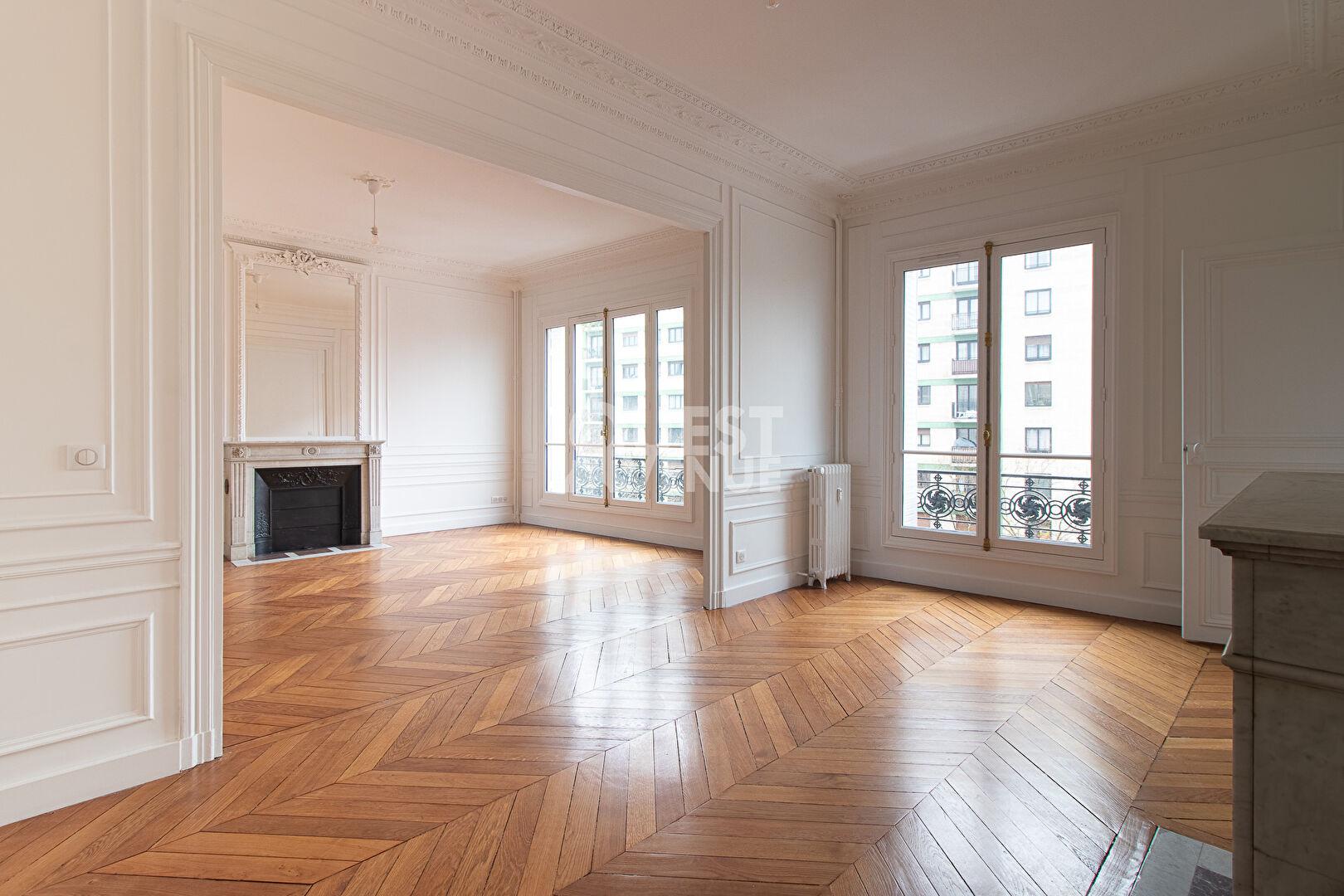 Idéalement situé dans un quartier recherché du XIV ème arrondissement, proche d’Alésia, au quatrième étage avec ascenseur d’un superbe immeuble haussmannien (parquet, moulures, cheminées) gardienné et sécurisé, cet appartement familial et de réception de 197 m², entièrement rénové avec soin, offre un cadre de vie exceptionnel. Il se compose d’une vaste galerie d’entrée, d’un double-séjour lumineux, d’une grande cuisine dinatoire, et d’une buanderie.