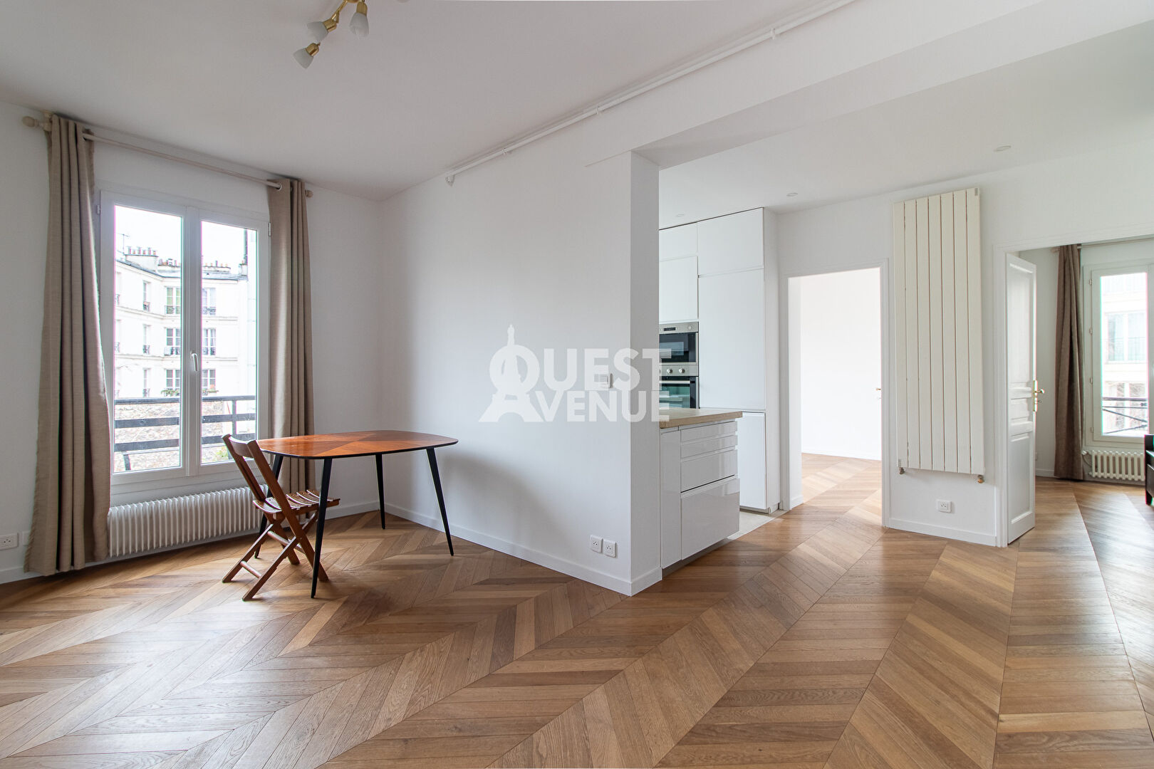 Élégant appartement de 3 pièces d’une superficie de 53 m² carrez, entièrement rénové et situé dans un quartier prestigieux, au pied des commerces. Niché au 3ème et dernier étage par escalier d’un immeuble sécurisé avec gardien, il est seul sur le palier, offrant calme absolu et intimité. Lumineux grâce à son exposition Sud-Ouest, il donne sur une vaste cour intérieure arborée et verdoyante. Il se compose d’un séjour spacieux avec cuisine ouverte équipée, de deux belles chambres dont une avec penderies et placards intégrés, d’une salle de bains et de toilettes séparées. Parquet point de Hongrie, double vitrage, cave saine et local à vélos complètent ce bien raffiné. Idéal comme pied-à-terre. A visiter sans tarder ! Contactez Nathalie PAILLAT-ROUX au 06.89.33.95.95 (2.99 % honoraires TTC à la charge de l’acquéreur.)