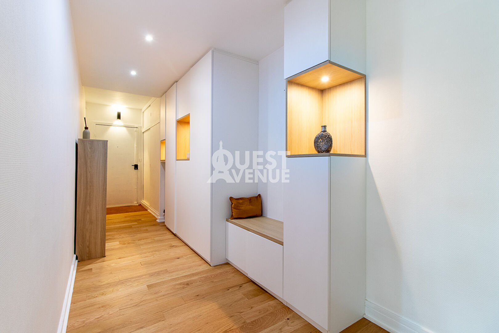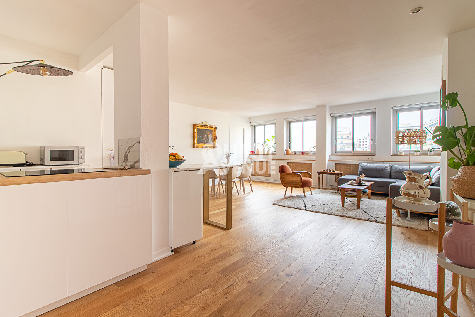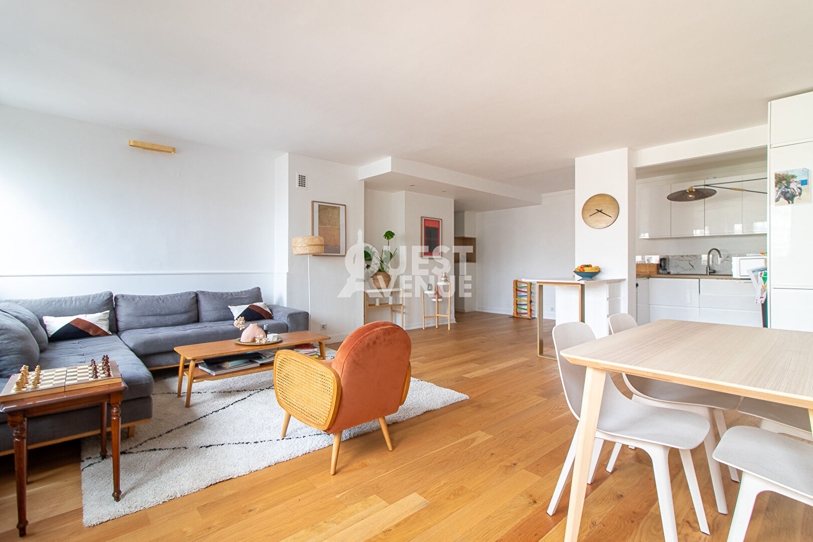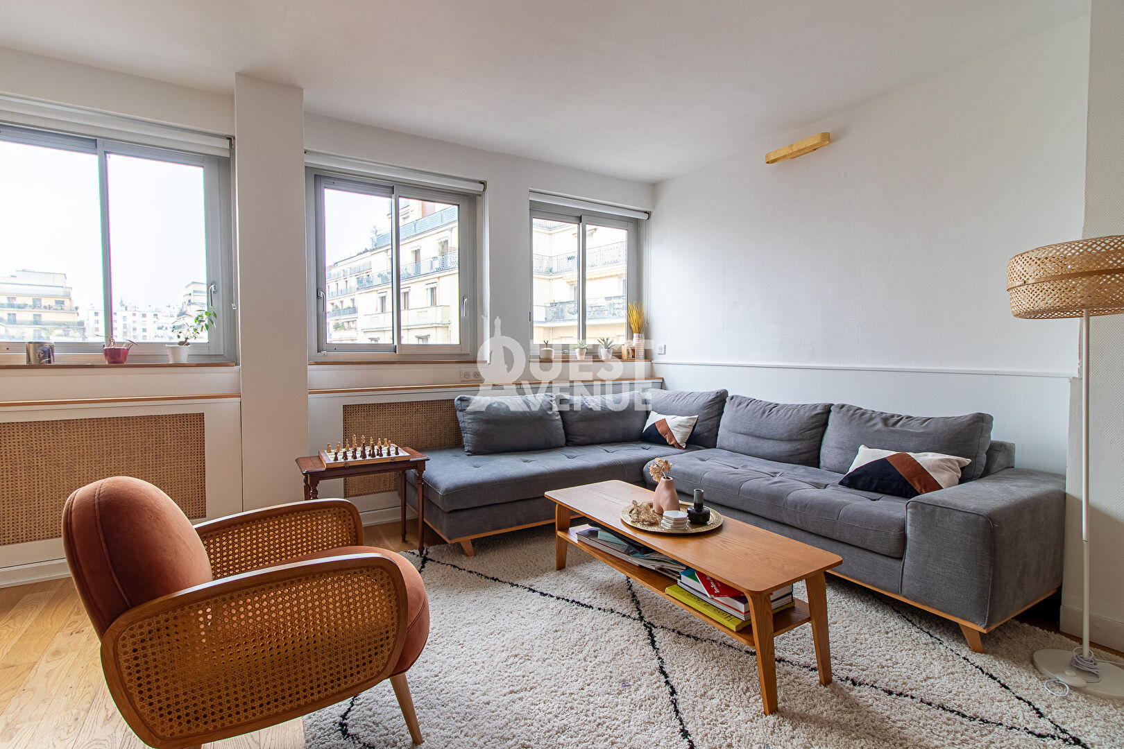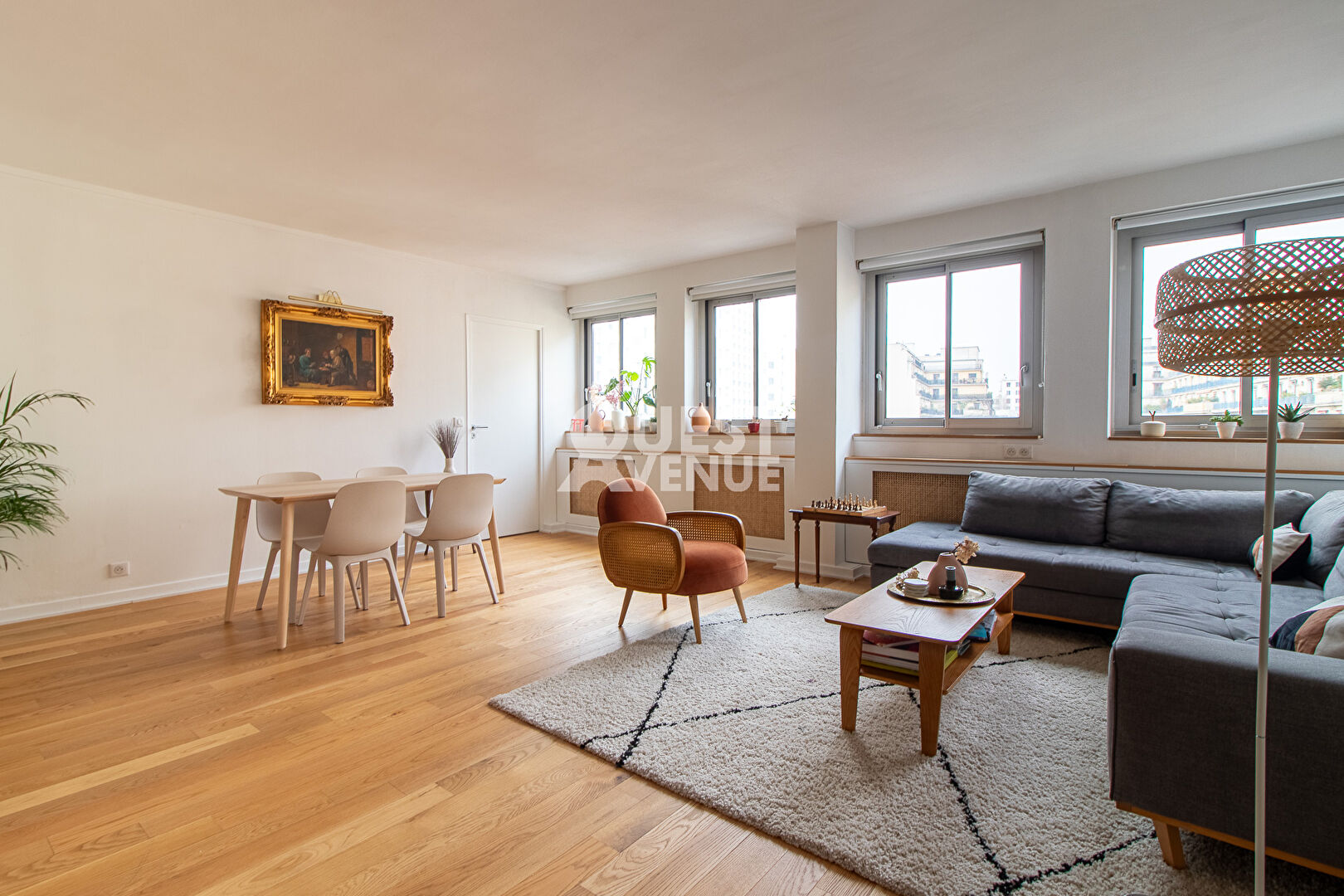 PARIS XVI – AUTEUIL – APPARTEMENT FAMILIAL – LUMINEUX – CALME. Dans une résidence renommée conçue par l’architecte Jean Ginsberg, cet élégant appartement familial de 113 m², situé au 5ème étage avec ascenseur, allie confort, calme et luminosité. Rénové avec des matériaux de qualité, baigné de lumière et sans vis-à-vis, il s’ouvre sur une entrée chic, agrémentée de boiseries et d’un grand module de rangements sur mesure. Le vaste double séjour de 43 m² avec sa cuisine ouverte et équipée offre un espace de vie convivial et moderne, exposé ouest. Une chambre de 12 m² avec sa salle d’eau privative complète cet espace. Côté jardin, un dégagement vous mène vers deux belles chambres de 14 et 18 m², une salle de bain avec double vasque, un dressing et des WC séparés. Le parquet moderne en bois massif apporte une ambiance chaleureuse et apaisante. Une cave, un local à vélos et un système de vidéosurveillance complètent ce bien. Idéalement situé à proximité des stations de métro Mirabeau, Église d’Auteuil et du RER C, cet appartement bénéficie également de la proximité des commerces du village d’Auteuil et des écoles réputées telles que Jean-Baptiste Say. UNE VISITE S’IMPOSE ! Contactez votre agent commercial Nathalie PAILLAT-ROUX au 06.89.33.95.95 (2.74 % honoraires TTC à la charge de l’acquéreur.)