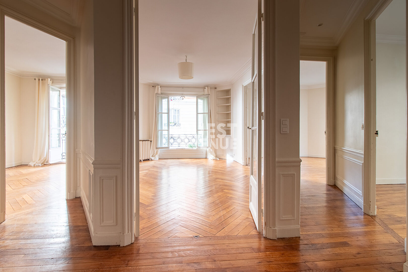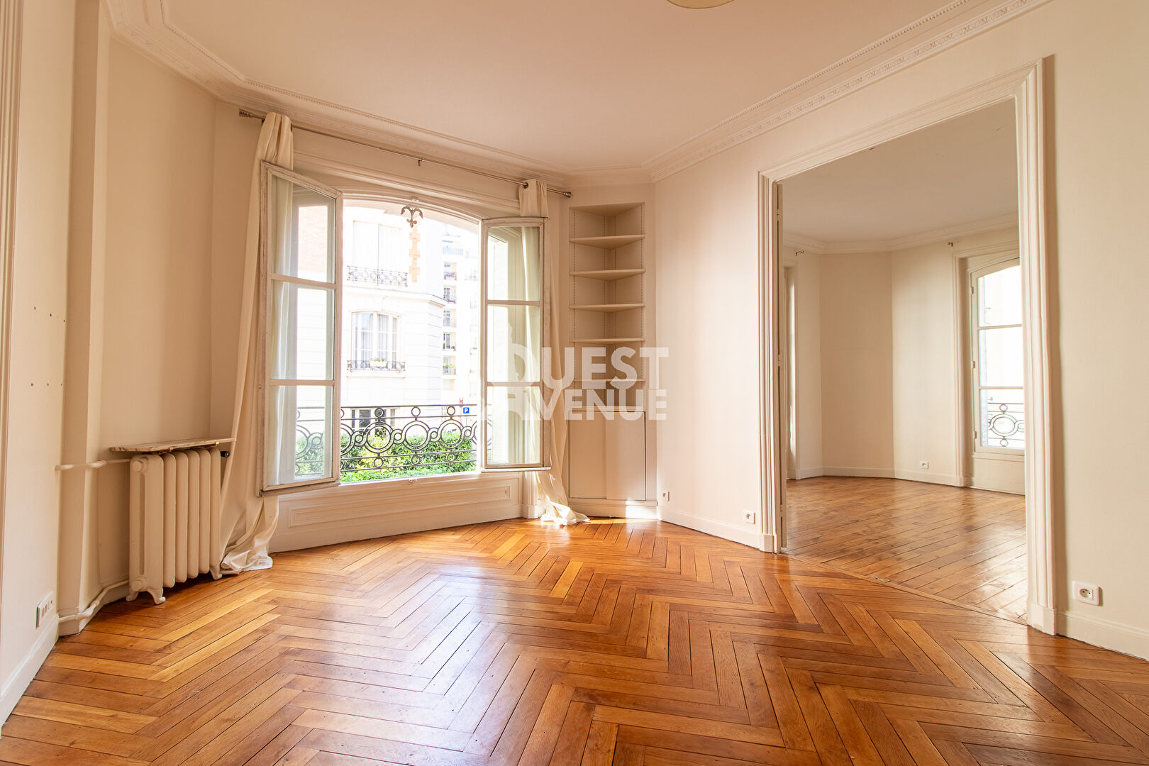 QUARTIER MUETTE. PLAN IDEAL PROFESSIONS LIBERALES. CHARME DE L’ANCIEN. Au sein d’un très bel immeuble année 30 rénové récemment avec gardien et ascenseur, très charmant appartement de 96m2 + sa chambre de service de 9,75m2. Il bénéficie de tous les charmes de l’ancien, moulures, cheminée, hauteur sous plafond (2,98m), très beau parquet Point de Hongrie. Muni d’un plan en étoile, très modulable, il peut aussi bien être recherché pour des professions libérales que pour une résidence principale ou secondaire. Actuellement il se compose d’une entrée, d’un salon, de 3 autres grandes pièces pouvant être à l’usage de chambres, salle à manger ou bureau, d’une cuisine indépendante, d’une grande salle de bain et d’un wc séparé. La chambre de service est au 2e étage et est vendu 70.000 euros en sus. Une cave complète ce bien. Très bien placé , dans une petite rue calme à sens unique, entre les gares RER de Boulainvilliers et Maison de Radio France, et proche des écoles et commerces. Video disponible sur instagram et Facebook (compte virginie grosjean pro) . A VOIR !!! Contactez votre agent commercial Virginie GROSJEAN au 06.63.89.56.56.