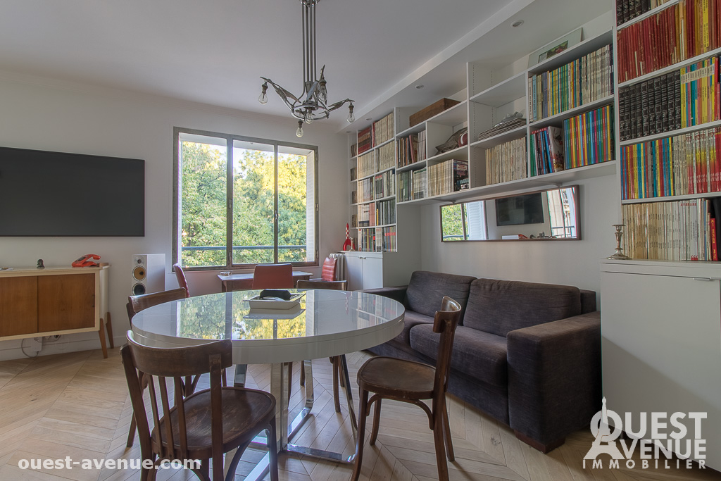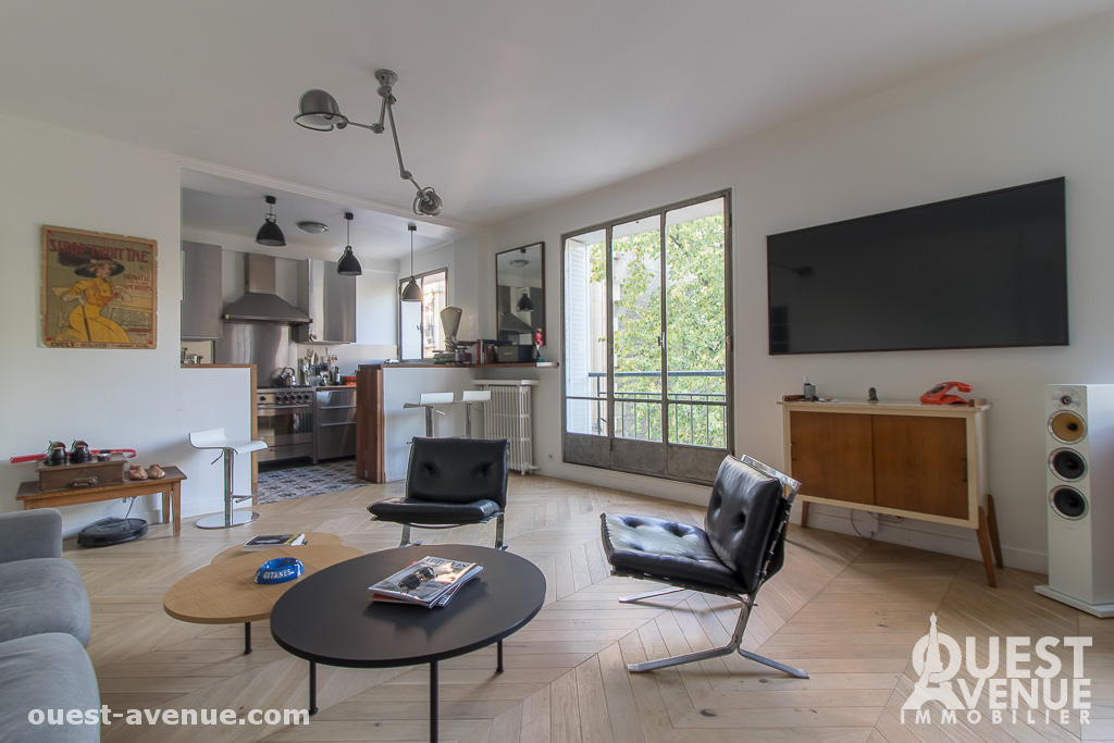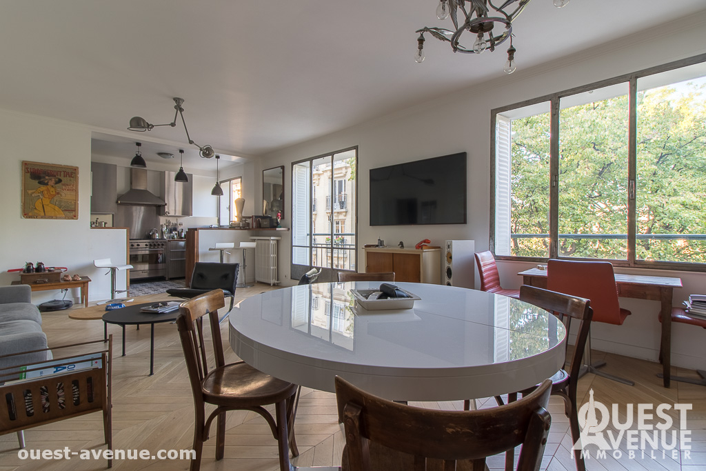 Au troisième étage avec ascenseur d’un immeuble de belle facture récemment ravalé, ce 2/3 pièces de standing (totalement refait en 2016 avec des matériaux de grande qualité) offre un espace de vie très agréable. Parfaitement agencé, son entrée distribue les espaces jour et nuit avec d’un côté un double séjour actuellement d’une surface de plus de 35 m2 qui s’ouvre sur de grandes fenêtres donnant sur un parc. (square carpeaux). La cuisine attenante d’environ 10m2 ouverte sur le séjour est totalement équipée et dispose de nombreux rangements. La partie nuit est, elle, composée : d’une chambre spacieuse donnant aussi sur le parc, d’une vaste salle de bains, de toilettes séparés et d’un dressing indépendant. Possibilité de revenir au plan d’origine en 3 pièces avec une simple cloison. Cet appartement dispose aussi d’une cave et bénéficie des services d’un gardien. A visiter sans tarder avec votre agent commercial Cécilia Adamo 06 15 12 82 08 (2.22 % honoraires TTC à la charge de l’acquéreur.)