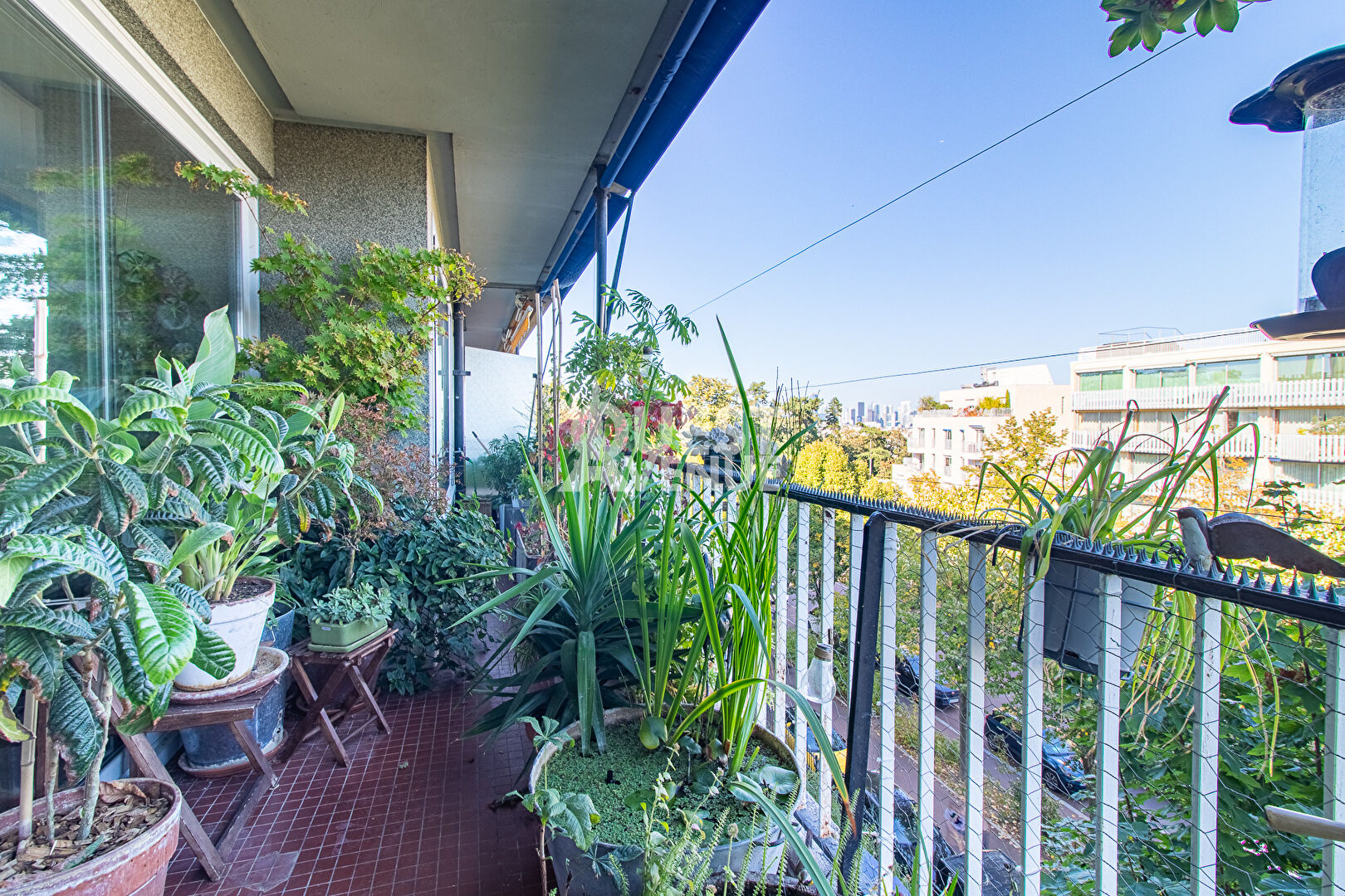 L’entrée mène à un double séjour de 30 m² ouvrant sur un large balcon de 12m², d’où vous profiterez d’une vue panoramique exceptionnelle sur Paris, la tour Eiffel et la Défense. La cuisine, séparée, est aménagée et équipée.