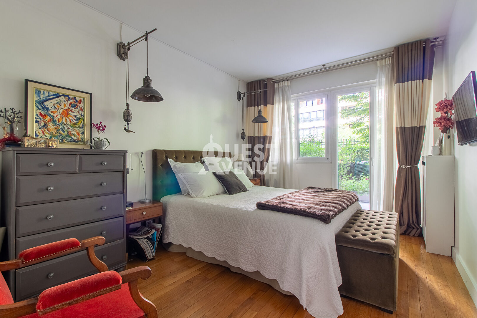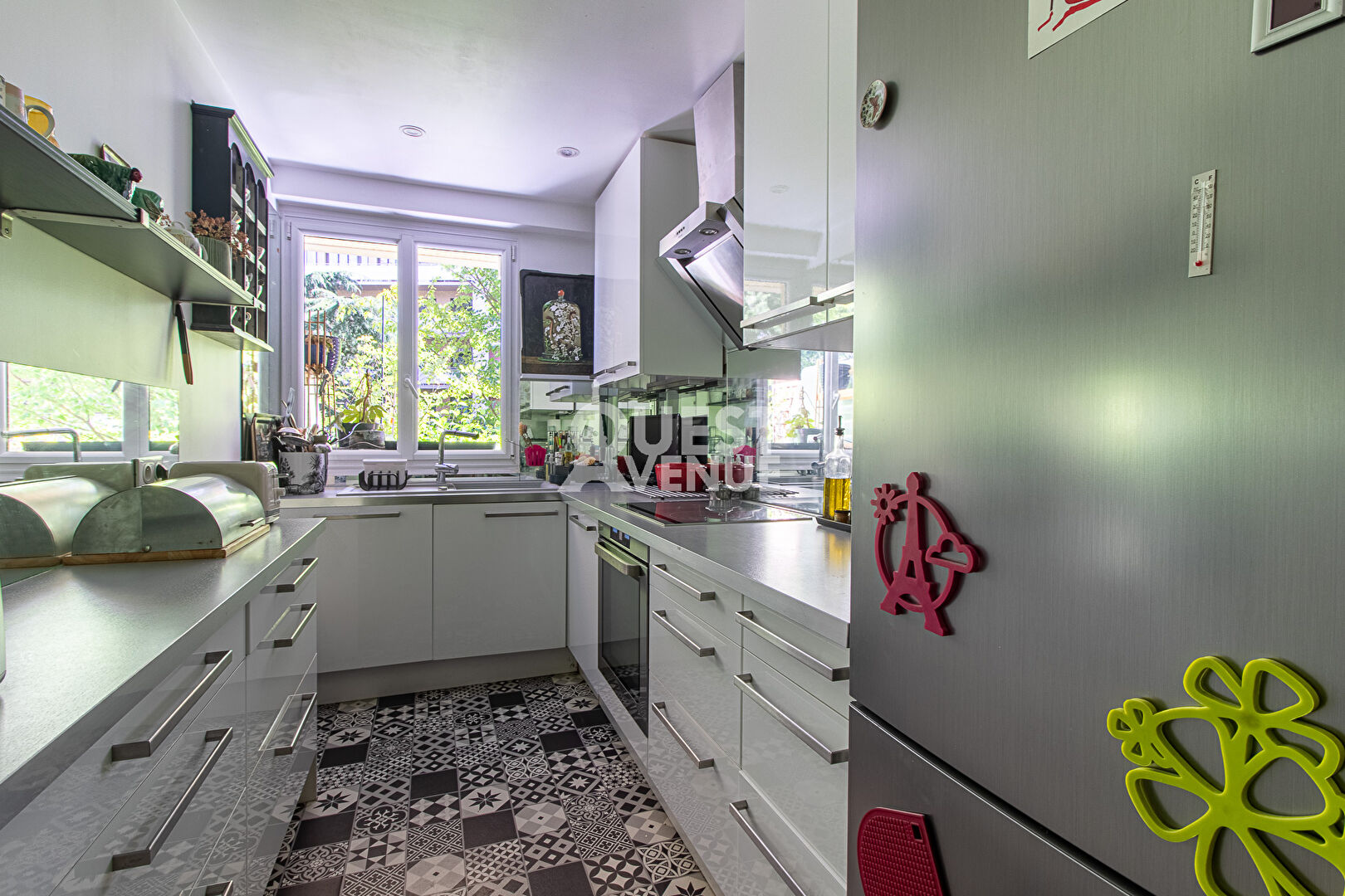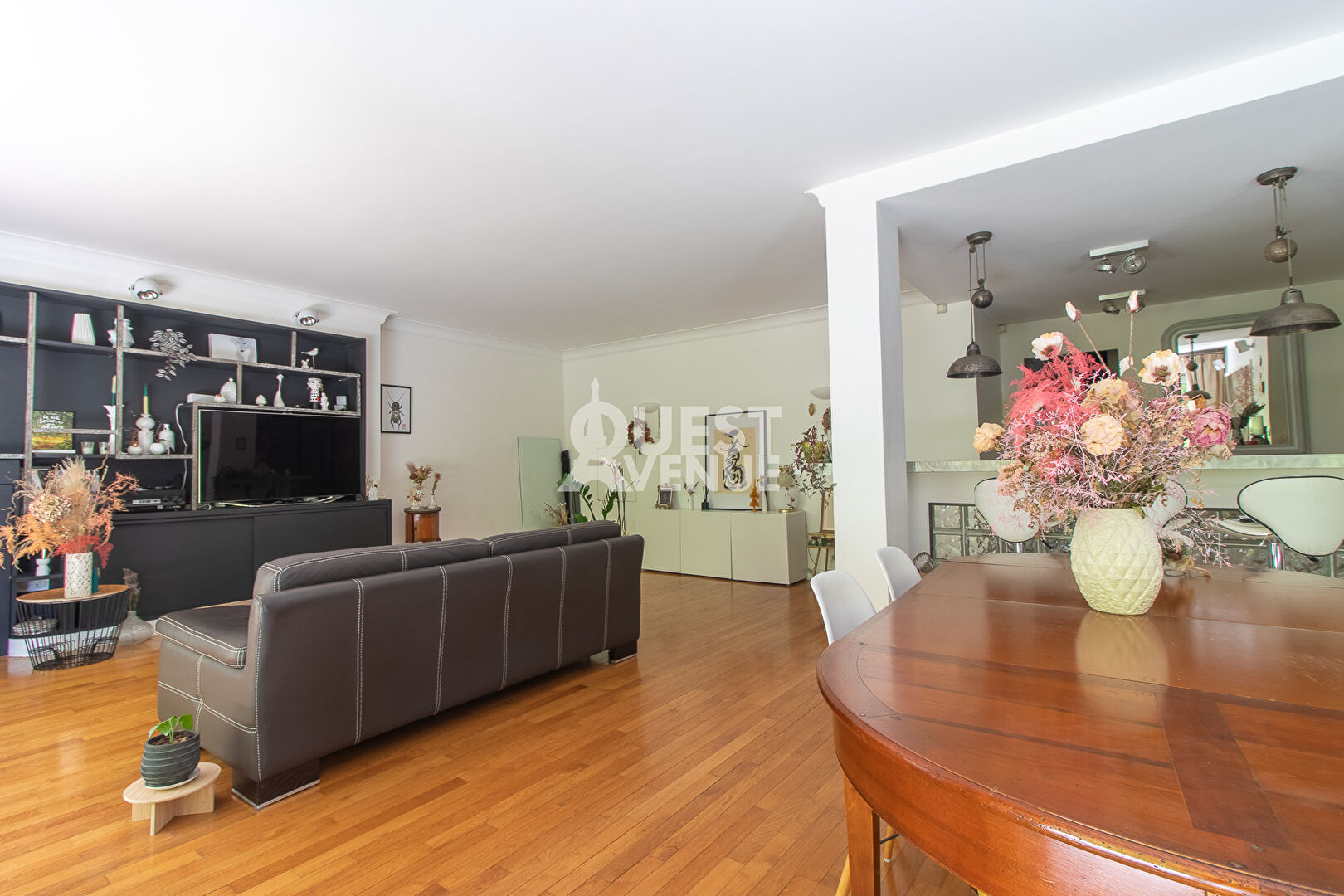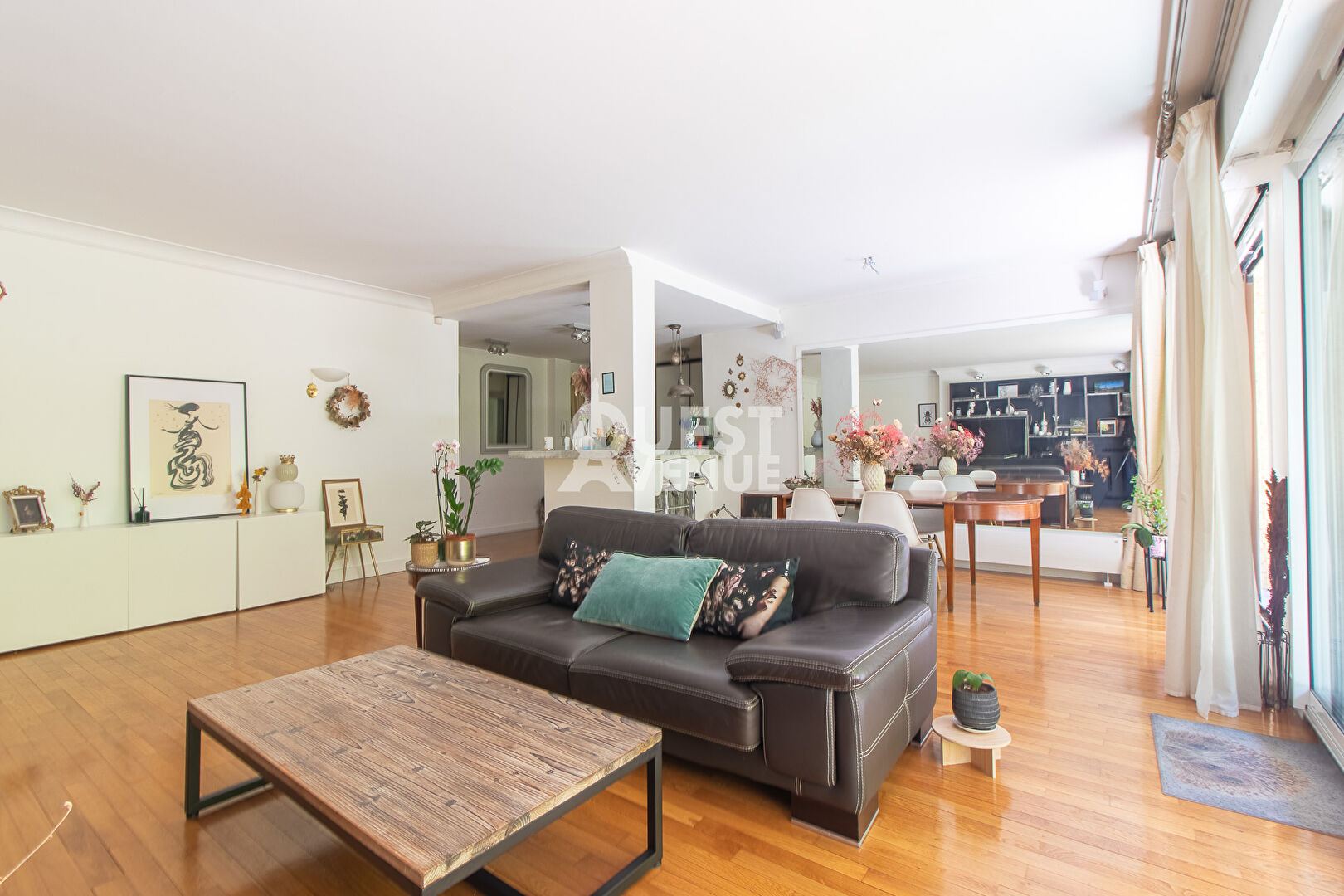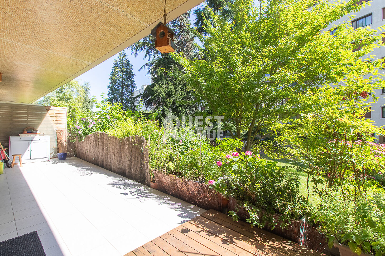 CALME. TRES BON ETAT. TERRASSE. En rez-de-jardin d’une résidence bien entretenue avec gardien et jardins, bel appartement en très bon état de 102m2 carrez + terrasse privative de 21 m2 au calme coté séjour (pondérée à 40%) et 11,5m2 coté chambre (non pondérée). Il est composé d’une très belle pièce de vie d’environ 40m2 donnant sur la grande terrasse donnant sur les jardins privatifs et sécurisés de la résidence. Les grandes baies vitrées en font un espace lumineux pour un rez de chaussée. Une cuisine aménagée et entièrement équipée, deux grandes chambres côté Ouest avec accès à la terrasse, une salle de bain, une salle de douche, un espace buanderie et d’un wc séparé. Possibilité de créer une 3ème chambre. Nombreux rangements, matériaux de qualité, volets roulants électriques centralisés, alarme. Une cave complète ce bien. Un box fermé en sous-sol est vendu en sus (25000 euro – charges environ 28/mois). Idéalement situé, à 2mn à pied de la gare du Val d’or (Ligne L), 8 minutes du tram les Coteaux (T2), commerces, écoles, centres sportifs et culturels à proximité immédiate. Profession libérale autorisée. A VOIR. Contactez votre agent commercial Virginie GROSJEAN au 06.63.89.56.56. Video également disponible sur instagram ou facebook (virginie grosjean pro). (3.02 % honoraires TTC à la charge de l’acquéreur.)