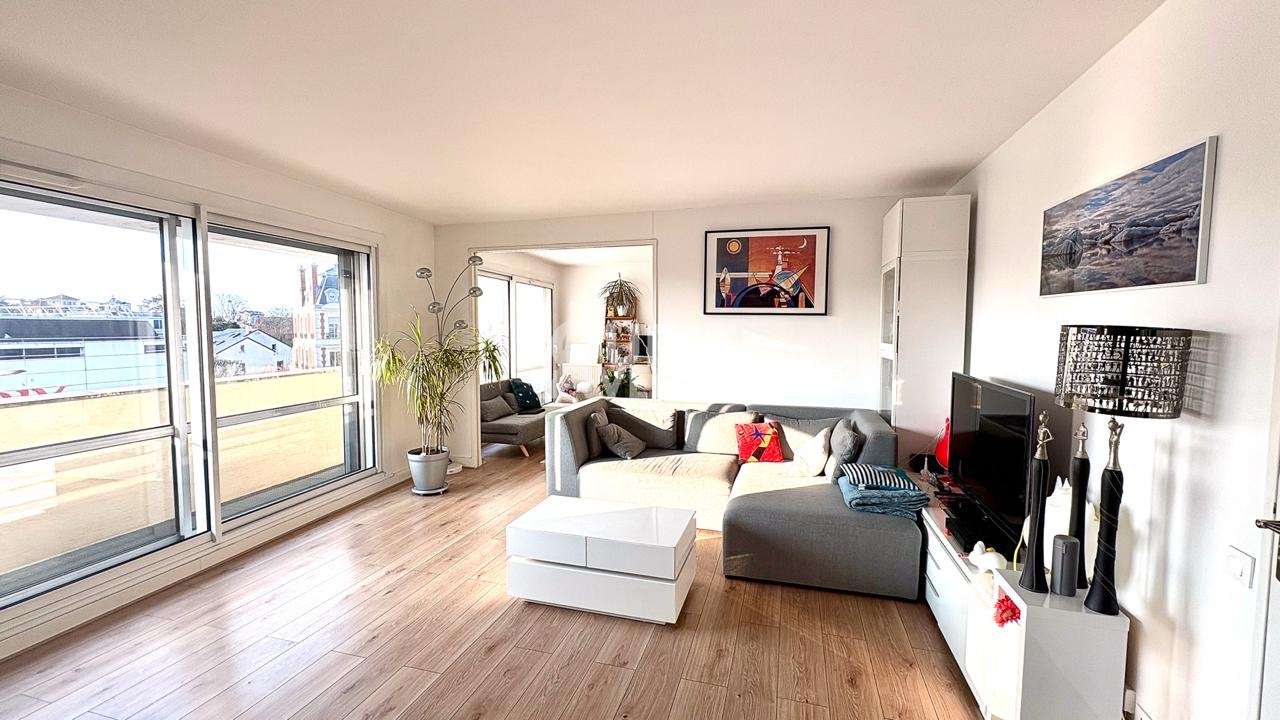 SAINT-CLOUD MONTRETOUT. PARFAIT ETAT. TRES LUMINEUX. Au 4ème étage d’une résidence bien entretenue avec gardien, bel appartement familial lumineux et en très bon état. Il est composé d’une entrée avec rangements, d’une belle pièce de vie lumineuse exposée Ouest sans vis à vis de 30m2 avec cuisine ouverte entièrement équipée, de 3 chambres (dont une actuellement séparée du salon par une porte coulissante) d’une salle de bains, d’une salle de douche, un grand espace buanderie, d’un wc séparé et de nombreux rangements. Enfin cet appartement bénéficie d’un grand balcon terrasse accessible depuis la chambre parentale et une chambre enfant, ainsi qu’un balcon filant coté pièce de vie sur lequel il est possible d’installer une petite table ronde. Une cave complète ce bien et un box en sous-sol est proposé en supplément (charges supp de 12 euros par mois environ). L’appartement est idéalement situé, à 250m de la gare de Saint-Cloud (Ligne L et futur Metro 15), des écoles et des commerces). Marché des Avelines à 500m. A VOIR !!! Contactez votre agent commercial Virginie GROSJEAN au 06.63.89.56.56. Video de présentation également disponible sur instagram et facebook (virginie grosjean pro) . (3.51 % honoraires TTC à la charge de l’acquéreur.)